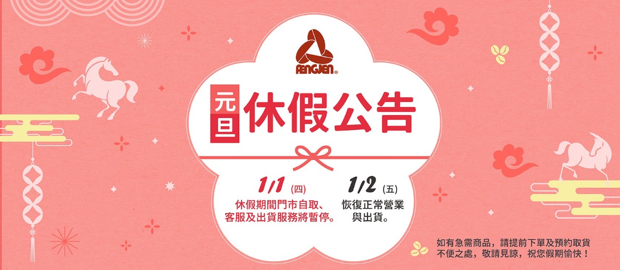 休假期間門市自取、客服及出貨服務將暫停。
