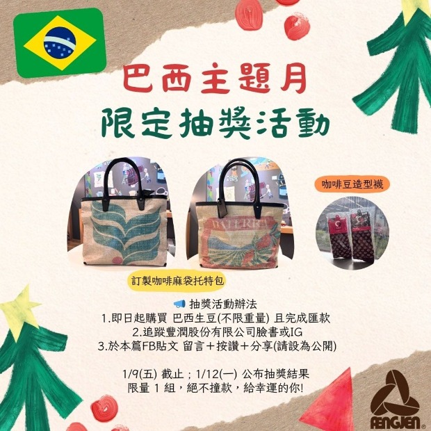 即日起購買巴西生豆的朋友,有機會抽中限量好禮 🎁: