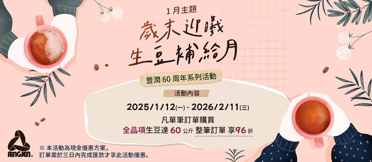 📍主題生豆滿60公斤享整筆訂單96折